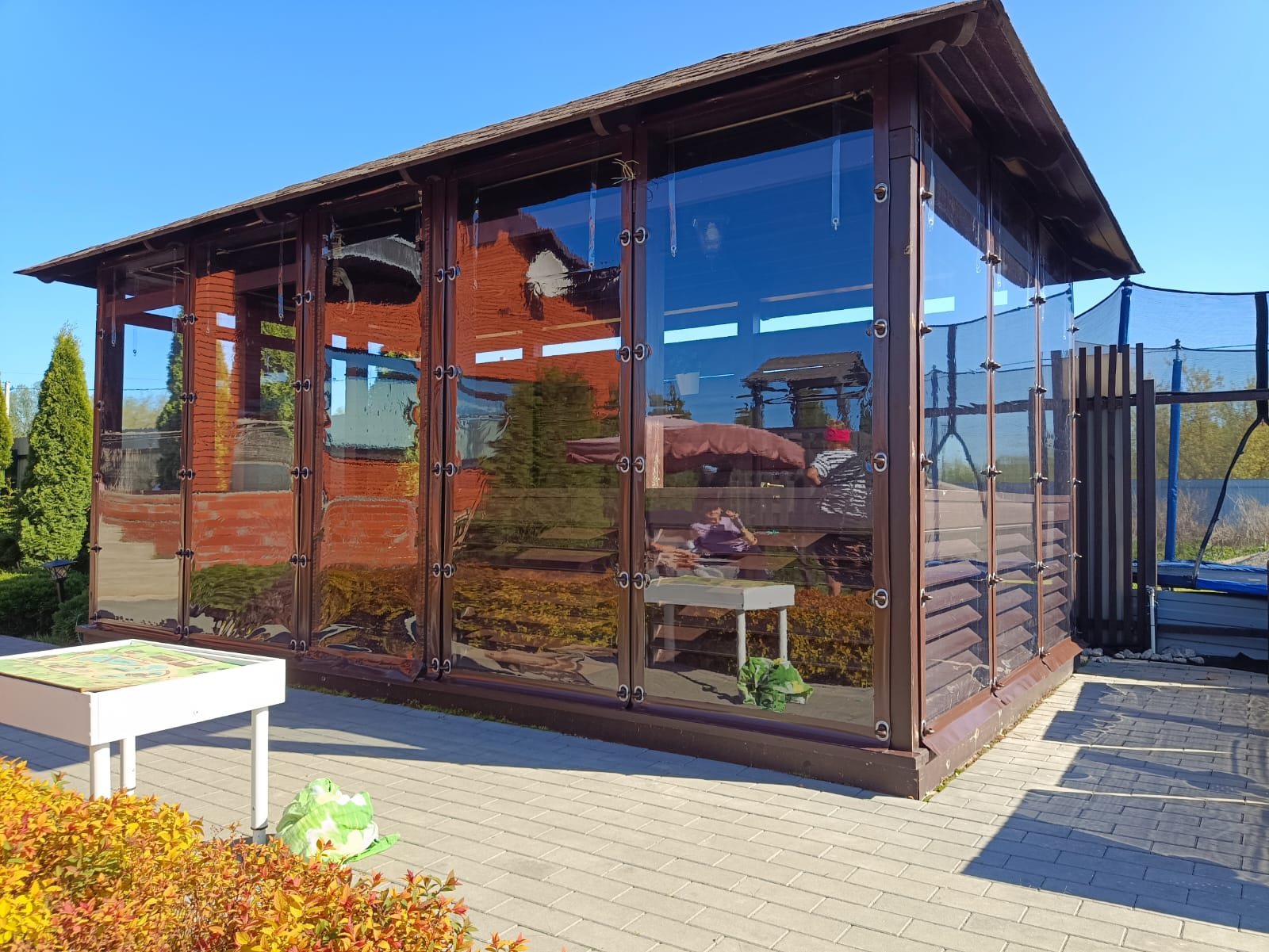 Пленка удерживает тепло внутри, позволяя использовать пространство до глубокой осени.